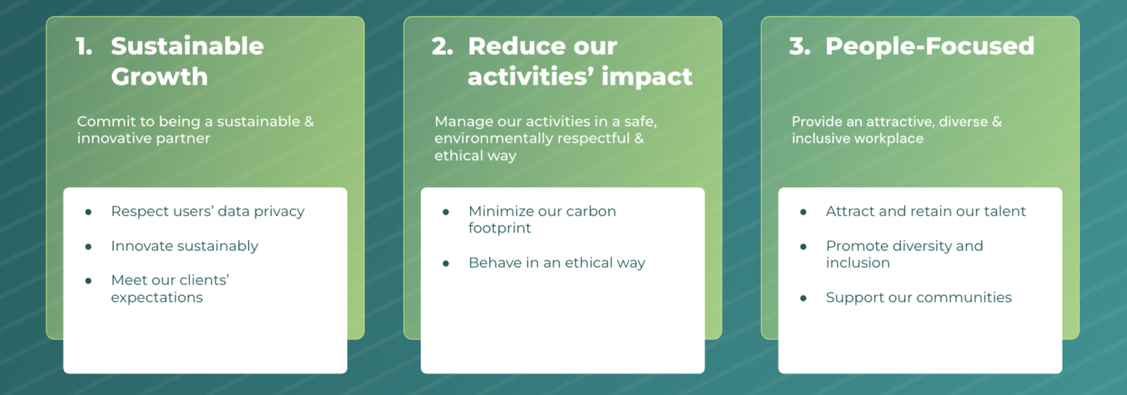 - Sustainable growth: We’ve committed to being a sustainable and innovative partner that respects our users’ data privacy, innovates sustainably and exceeds our clients’ expectations.